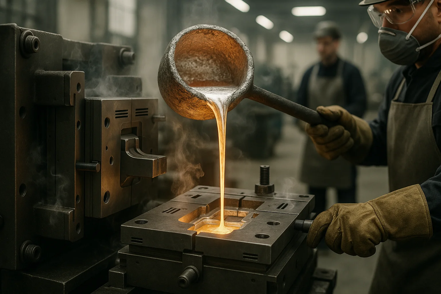 Hybrid tilt pouring: Gravity die casting with automated tilt pouring for better control and fewer defects.